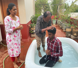 DAVID TROOP CHURCH was conducted in Thiruvarambur. Troop church was conducted in Sol. Rajkumar’s house. This troop has massively changed his life, He got his job back (Which he lost for the past 1 year) after he obeyed the Lord and joined with his wife. His family members except his father accepted troop church and baptised.Sol. Rajkumar’s mother and his sister’s son took baptism. Lord supper was served. 4 Bibles were given as gifts to this Catholic family who has accepted Jesus Christ. Troop church will be starting in his house in BHEL soon. Trichy constituency Thiruverumbur SMLA Sol. Nirmala also accompanied us. All Glory to Jesus